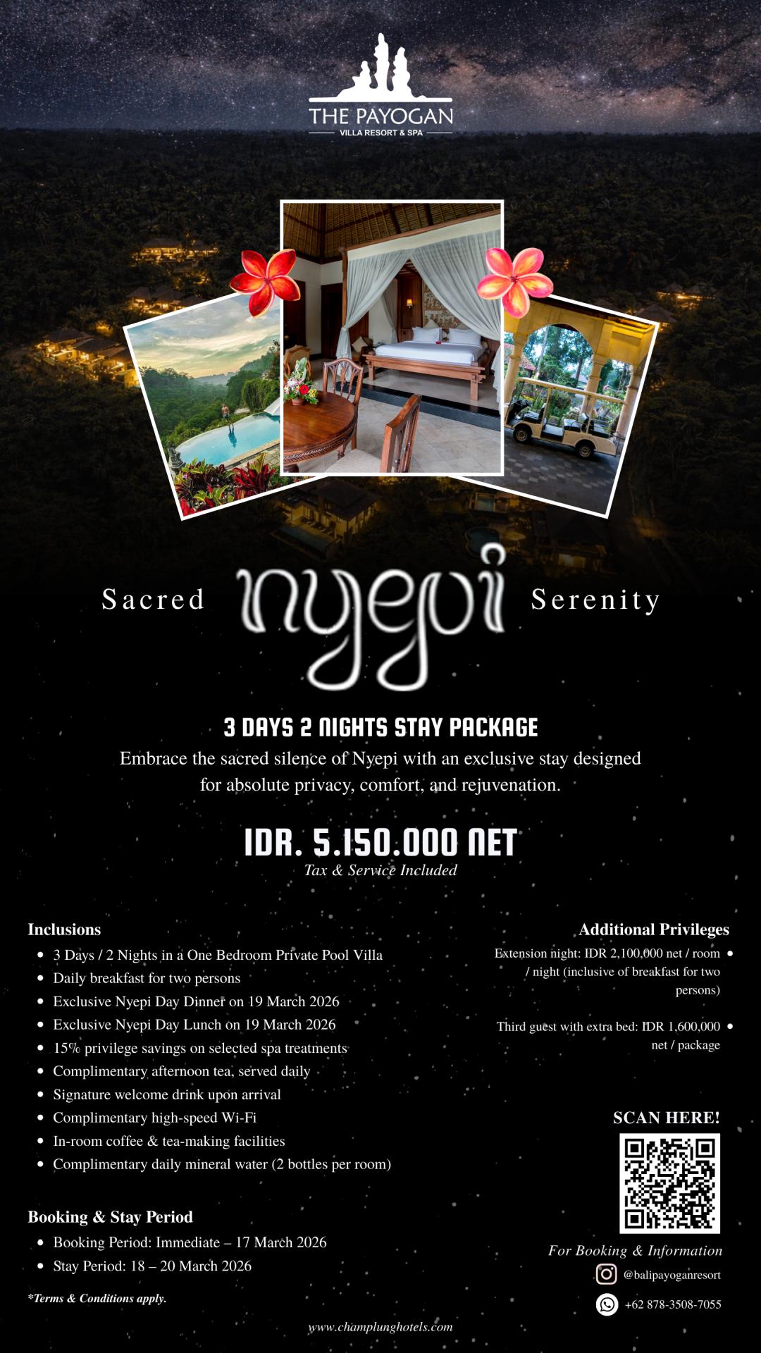 embraces 7 hectares of timeless landscape that is traversed by two separate river flows. It is just a 10 minutedrive by car from downtown Ubud. Enveloped by hinterland greenery, this secluded property celebrates nature'sprecious bounty and the gift of each new day.